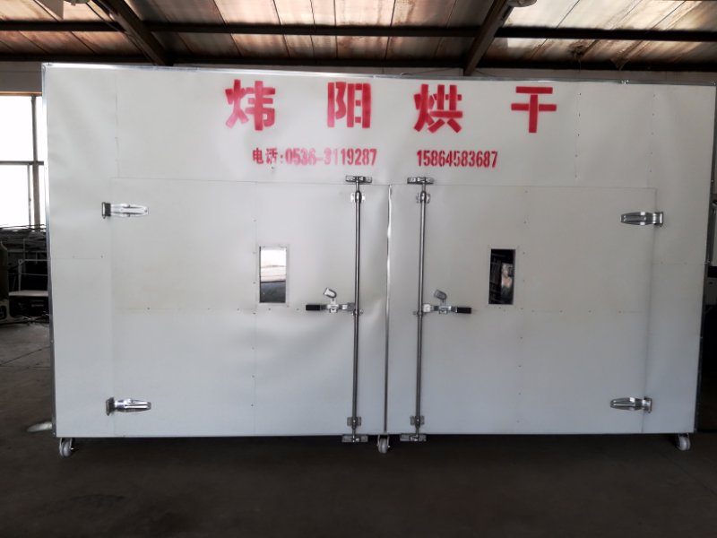 5.次烘干 切瓣后,把茄子剖面朝上、一個一個地擺放在網格盤上,將網格盤插入物料車,將物料車推入烘干房,開機,溫度設定58度,時間12小時,無需翻動。烘干完畢待散熱后即可進行鹽腌。