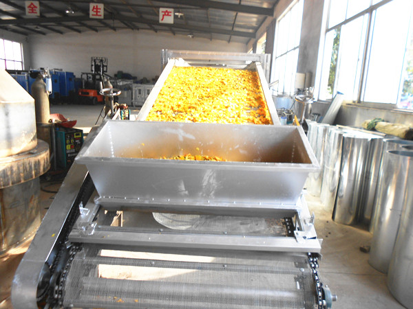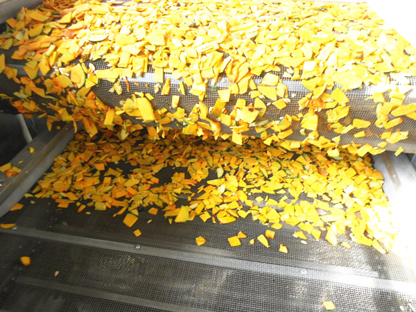 蔬菜網帶烘干機設備由若干個獨立的單元段所組成,每個單元段包括循環風機、加熱裝置、單獨或公用的新鮮空氣抽入系統和尾氣排出系統。因此,對干燥介質數量、溫度、濕度和尾氣循環量等操作參數,可獨立控制,從而保證工作的可靠性和操作條件的優化。帶式干燥機操作靈活,濕物料進料、干燥過程在完全密封的箱體內進行,自動化程度高,勞動條件好,避免了粉塵的外泄。帶式干燥機的被干燥物料隨同輸送帶移動,物料顆粒間的相對位置比較固定,干燥時間基本相同。帶式干燥機非常適用于要求干燥物料色澤變化一致或濕含量均勻的物料干燥。