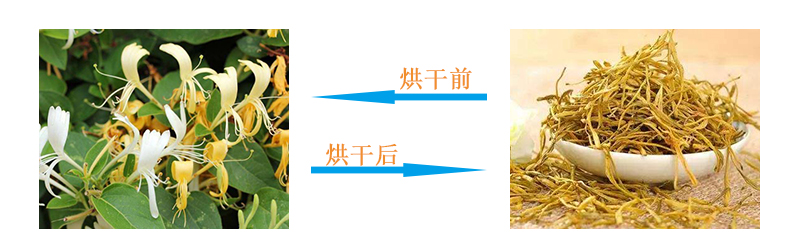 隨著金銀花烘干機(jī)的運(yùn)轉(zhuǎn),箱體的金銀花在網(wǎng)帶上不斷向前移動(dòng)。箱體內(nèi)采用多層網(wǎng)帶式結(jié)構(gòu),金銀花在傳動(dòng)裝置的帶動(dòng)下向前移動(dòng)并逐層掉落,翻轉(zhuǎn);層與層之間設(shè)有導(dǎo)料裝置,防止物料隔層掉落,由于物料在箱體內(nèi)由多次地掉落、翻轉(zhuǎn)過(guò)程,使受熱面發(fā)生改變,物料均勻受熱,避免了干燥不均勻現(xiàn)象的發(fā)生。